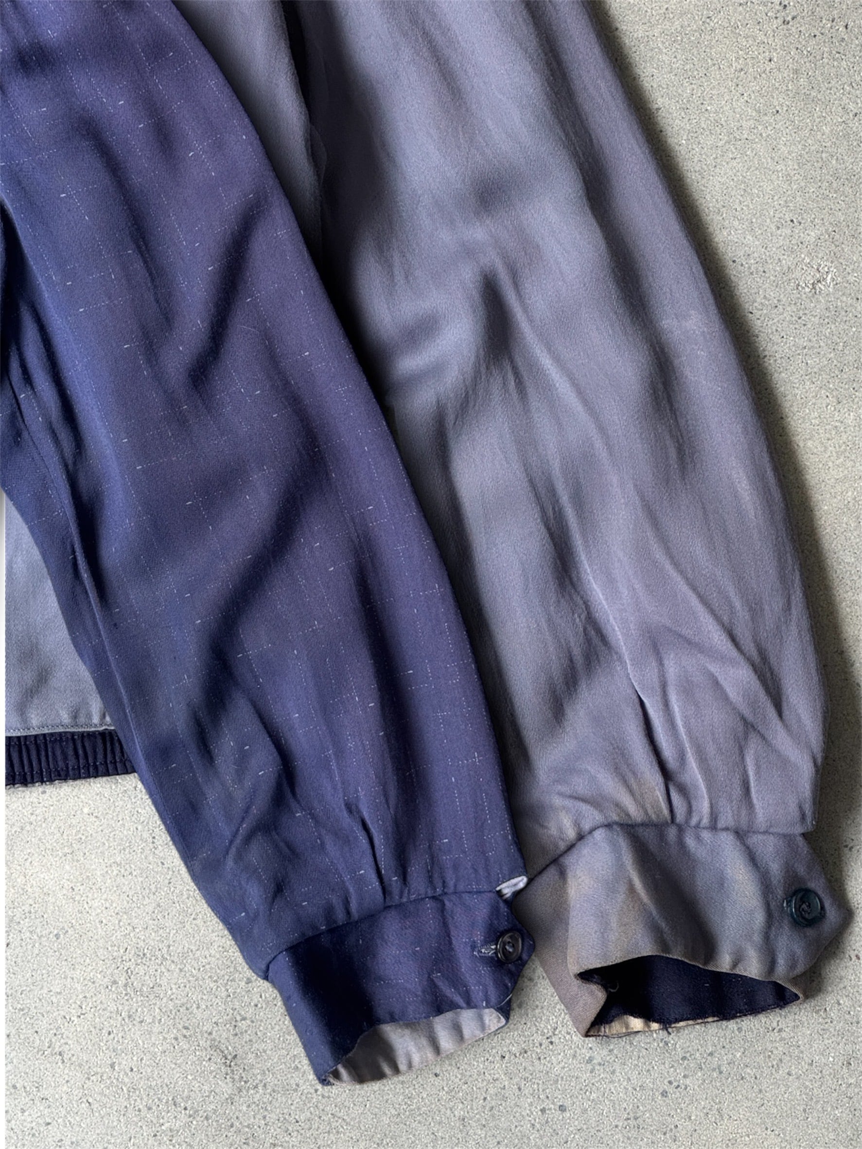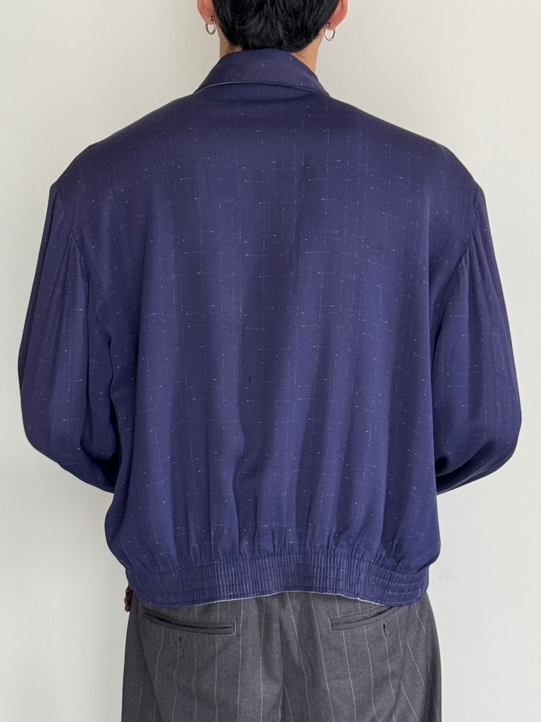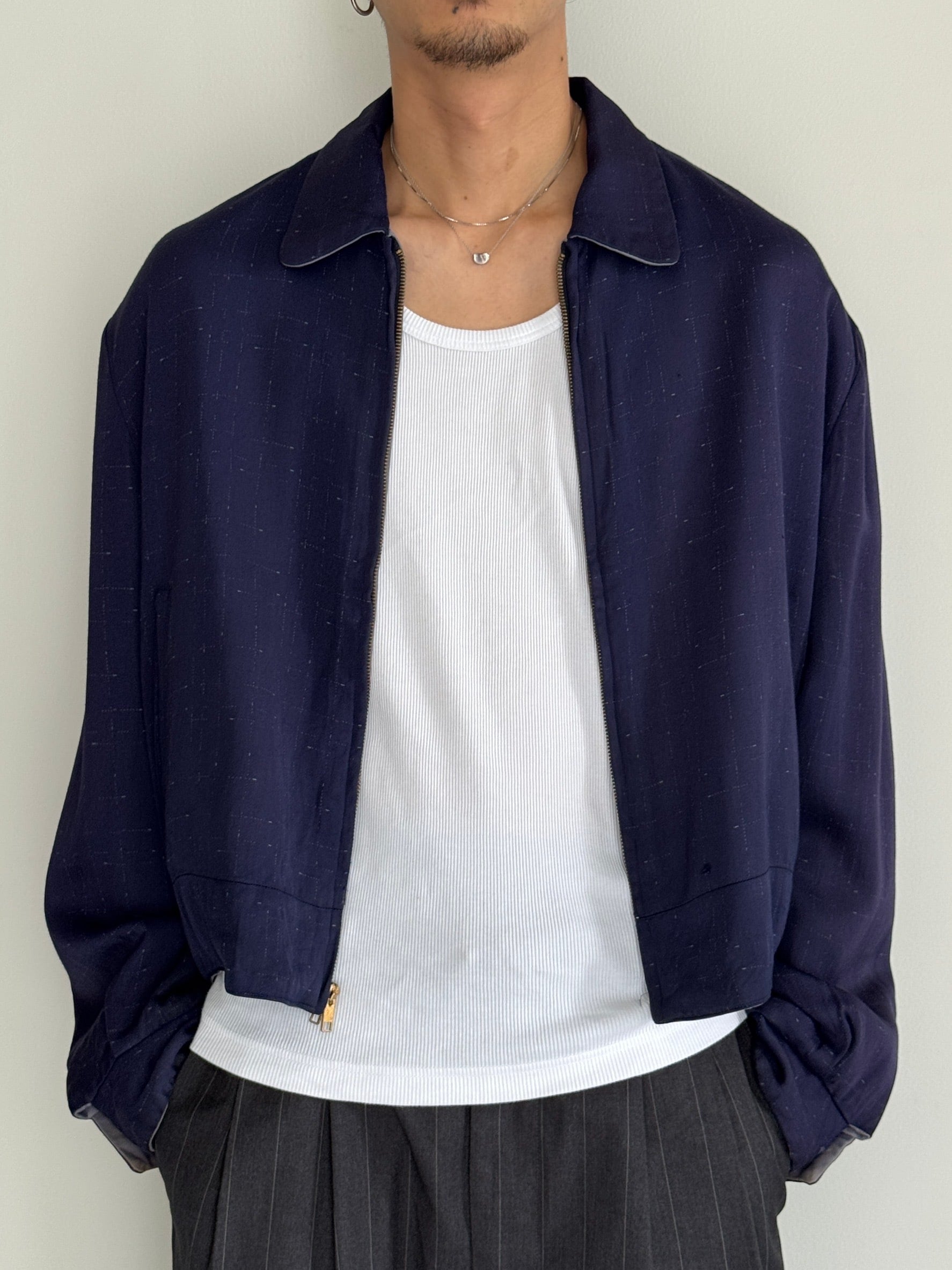 レーヨン生地をギャバジン織りで仕立てたジャケットタイプ。