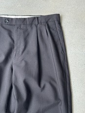 ウールスラックスながらもポリの割合が高いため、これからの季節だけでなく夏場でもラフに着ていただける一枚。