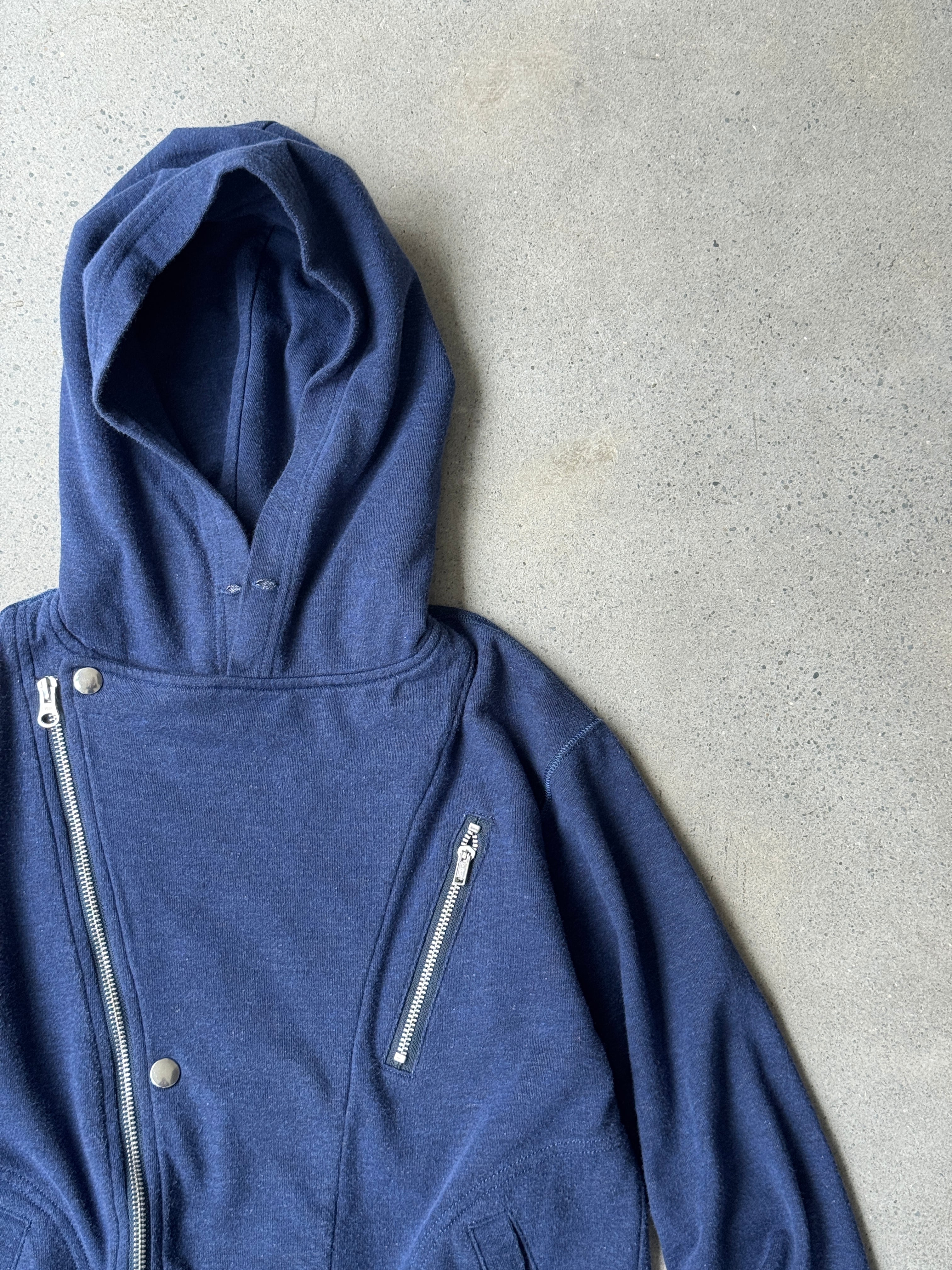 レザーのライダースジャケットなどでもよく見られるアシンメトリーのジップデザインを採用したジップフーディーが入荷致しました。
